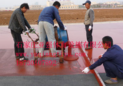 3,施工容易:在混凝土或瀝青基礎(chǔ)面上、通常分7個工序即:打磨、沖洗、修補(bǔ)層、填縫膠、彈性層、