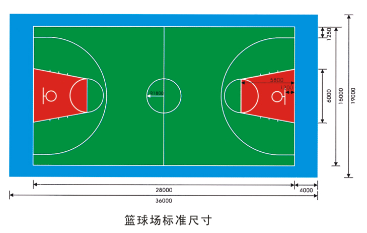 在建造籃球場地時,球場區(qū)域要達(dá)到28×15m(包含副場32×18),再加上周圍區(qū)域,總面積要達(dá)到32.1×22.1m或18m(18m為最小寬度)。這樣的場地可以適應(yīng)各種地方級的比賽。如果利用現(xiàn)有籃球場地進行各級別的國內(nèi)比賽,場地的長度和寬度都可以根據(jù)實際情況比標(biāo)準(zhǔn)小一些,但是不能太多;場地長度最多可縮小4m,寬度最多可縮小2m,而且場地長度和寬度必須成比例(2:1)的縮?。ɡ缈偯娣e可縮小為26×14m)。按照歐洲籃球聯(lián)盟修改后的規(guī)則,對于26×14m的場地,如果籃扳和支架是固定設(shè)置的,在球場長度不變的情況下,球場寬度可放大到15m。