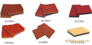 該項跑道材質(zhì)采用彩色EPDM膠粒與聚氨酯粘合劑,用量為EPDN膠粒的1/4~1/5倍,采用攤鋪機攤鋪壓成平面制成間隙型的彈性層,鋪設(shè)厚度10~25mm厚。具有平整面好,不易起泡,雨后滲水快,適合于各種基礎(chǔ)安裝鋪設(shè),適用于教學(xué)、幼兒園跑道及球場,尤其器械區(qū)緩沖墊層、健身房等效果更佳。