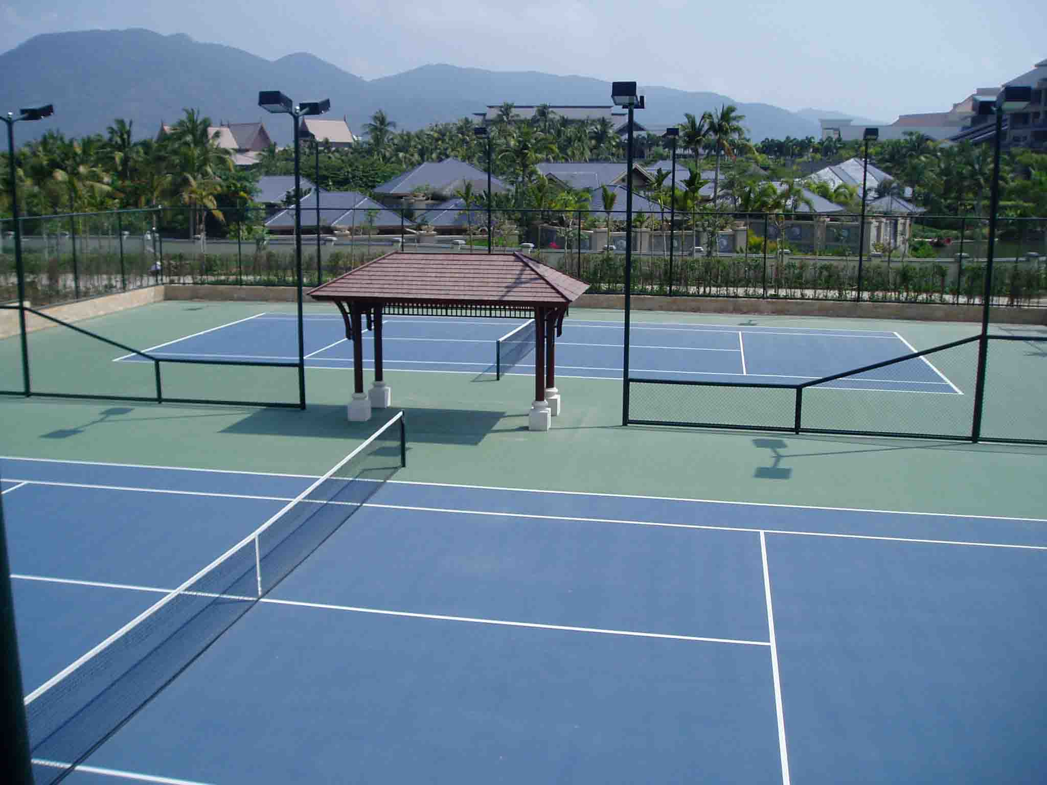 (4)維護(hù)保養(yǎng)便利,使用壽命長(zhǎng)。綜上所述,丙烯酸(硬地丙烯酸/彈性丙烯酸)涂料是目前網(wǎng)球場(chǎng)面層的首選材料。目前的主要品牌有:action-pave Tennislife Nova等。而Action-pave是中國(guó)網(wǎng)球協(xié)會(huì)授權(quán)特許使用中國(guó)網(wǎng)球協(xié)會(huì)(CTA)標(biāo)志此外,國(guó)外新興一種地面材料--懸浮式拼裝運(yùn)動(dòng)地板,因其具有使用時(shí)限長(zhǎng),減震性能好(有效吸附90%垂直沖擊力),安全性高,安裝簡(jiǎn)便,適合多種運(yùn)動(dòng)項(xiàng)目,也越來(lái)越受到星級(jí)賓館酒店,私人俱樂(lè)部,大中學(xué)校等客戶(hù)喜愛(ài)。