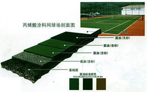 (4)維護保養(yǎng)便利,使用壽命長。綜上所述,丙烯酸(硬地丙烯酸/彈性丙烯酸)涂料是目前網(wǎng)球場面層的首選材料。目前的主要品牌有:action-pave Tennislife Nova等。而Action-pave是中國網(wǎng)球協(xié)會授權(quán)特許使用中國網(wǎng)球協(xié)會(CTA)標(biāo)志此外,國外新興一種地面材料--懸浮式拼裝運動地板,因其具有使用時限長,減震性能好(有效吸附90%垂直沖擊力),安全性高,安裝簡便,適合多種運動項目,也越來越受到星級賓館酒店,私人俱樂部,大中學(xué)校等客戶喜愛。