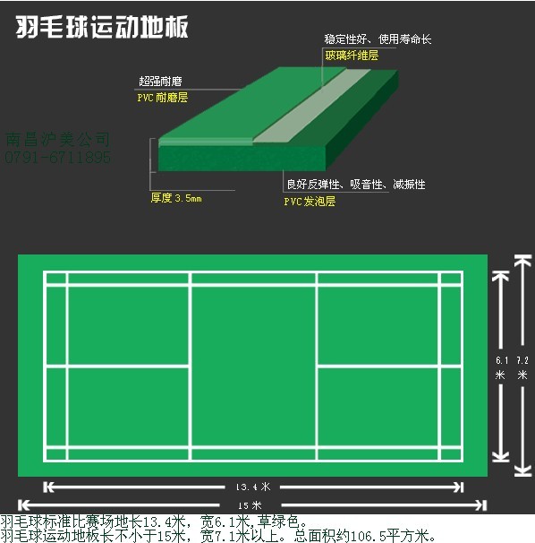 羽毛球場地 室內(nèi)PVC羽毛球場地標準: