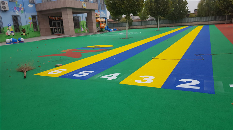 無(wú)縫EPDM地墊:現(xiàn)場(chǎng)鋪設(shè)、可制作彩色無(wú)接縫圖案、價(jià)格相對(duì)較高、多用于幼兒園游樂(lè)場(chǎng)