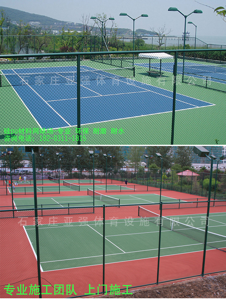 塑膠球場PU面層是由塑膠材料于現(xiàn)場混合鋪設(shè)、流平固化后形成的無接縫彩色彈性體,廣泛用于室內(nèi)外籃球場、網(wǎng)球場、
